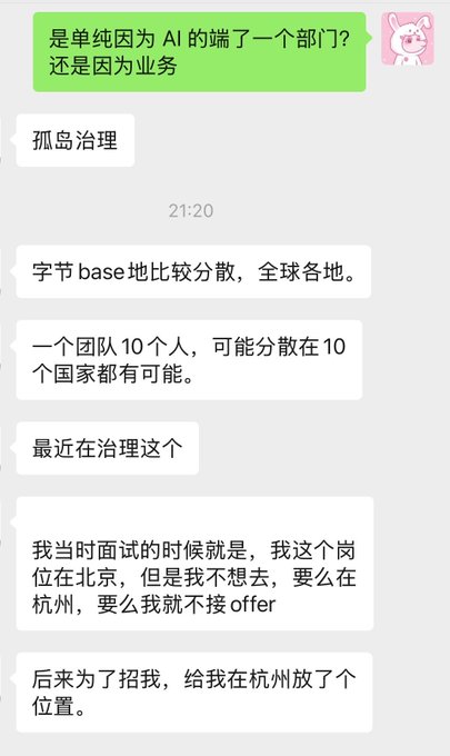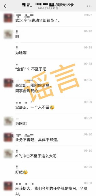 바이트댄스가 AI 때문에 우한 지사 직원들을 전량 해고했다는 소문이 사실인가요? 루머 유포는 그만하세요… AI가 이렇게까지 부당하게 비난받는 건 말도 안 돼요. AI 자체도 이런 상황은 예상 못 했을 거예요 🤣 핵심은 바이트댄스가 최근 ‘사일로 문제’를 해결하기 위해 노력하고 있다는 점입니다. 사일로 문제란 무엇일까요? 바이트댄스는 현재 전 세계에 지사를 두고 지리적으로 분산되어 있습니다. 팀원 10명이 10개국에 흩어져 있는 경우도 있어 소통 비용이 엄청나게 발생합니다. 재택근무가 가능해졌지만, 여러 부서와 진정으로 협업해 본 사람이라면 지역과 부서를 넘나드는 소통이 얼마나 어려운지 잘 알 겁니다… 정말 슈뢰딩거의 고양이처럼 복잡한 문제죠 🤡 바이트댄스 내부 소식통에 따르면, 이번 우한 해고는 AI와는 전혀 관련이 없다고 합니다. 작년 12월 초, 바이트댄스 내부 공지에 따르면 올해 3월까지 우한에 있는 모든 직원이 1선 도시로 재배치될 예정이라고 합니다. 이는 부서 간 장벽을 허무는 경영 방침의 일환입니다. 제 친구 한 명은 베이징에서 면접을 봤는데, 가고 싶어 하지 않았습니다. 항저우에서 근무해야만 채용하겠다고 고집했습니다. 바이트댄스는 그를 위해 항저우에 특별 직책까지 만들어 주었습니다. 이번 구조조정은 해고가 아니라, 재배치 또는 전보입니다. 아무도 원하지 않는 부서에 배치될 경우에만 상당한 인센티브 패키지가 제공될 예정입니다. 소문으로만 떠도는 우한 부서와 마찬가지로, 제 동료가 항저우에서 근무했던 팀도 같은 과정을 거쳤습니다. 바이트댄스 내부 관계자들은 이러한 변화가 긍정적이라고 생각합니다. 핀둬둬와는 달리, 바이트댄스는 조직 구조가 파편화되어 있어 내부 소통이 원활하지 못했기 때문입니다. PDD의 모든 R&D 팀은 상하이의 한 건물에 모여 있어 매우 효율적인 소통이 가능합니다. 따라서 바이트댄스는 최근 팀 간의 고립으로 인한 소통 문제를 해결하기 위해 노력하고 있습니다. 이는 이미 진행 중이던 내부 조직 최적화 계획의 일환입니다… 항상 AI 탓만 하지 마세요 🤡 twitter.com/0xMilkRabbit/statu...