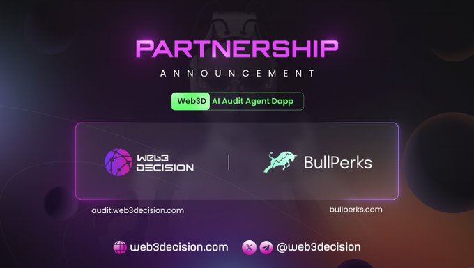 새로운 파트너십 발표 @Web3Decision 🤝 @<BullPerks> 불퍼크스는 단순한 런치패드가 아니라 깨끗한 런치 혁명입니다 강력한 윤리, 실제 심사, 그리고 커뮤니티 중심의 가치에 기반합니다. Web3D와 함께 ✅ AI 기반 감사 ✅ 고객 확인 절차(KYC)/기업 확인 절차 점수 ✅ 토크노믹스 및 비즈니스