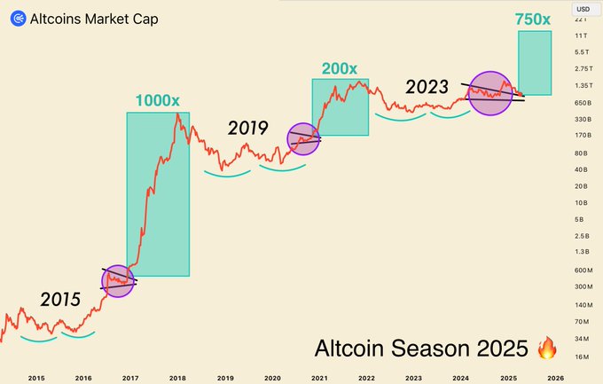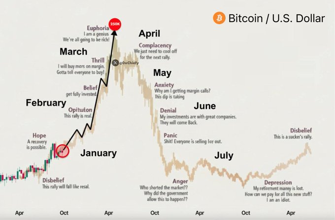 2026년 불장 패턴: 1월 – 누적 2월 – 비트코인 랠리 3월 – Altseason 4월 – 비트코인 25만 개 5월 – 불트랩 6월 – 대규모 재고 정리 7월 – 약세장 이 페이지를 즐겨찾기에 추가하고 6개월 후에 다시 확인하세요 🔖