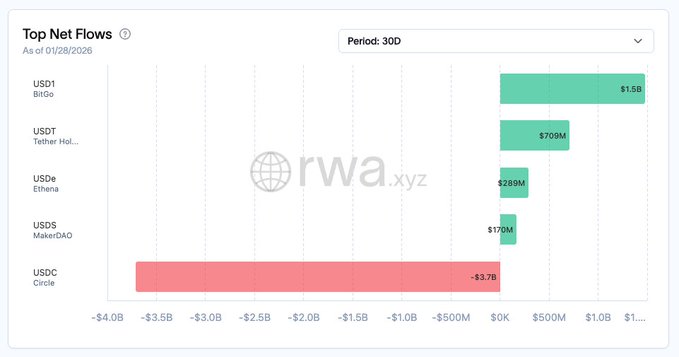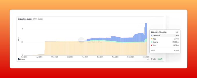 @BNBCHAIN에서 유통되는 1달러화의 총량이 20억 달러를 넘어 정점을 찍었습니다. 하지만 바이낸스 코인(BNB) 체인의 1위 자리는 이더리움이 23억 7천만 달러로 되찾았습니다. 바이낸스 코인(BNB) 체인과 이더리움은 합쳐서 전체 1달러화폐 공급량의 대부분을 차지하며, 그 규모는 50억 달러 이상으로 제한되어 있습니다. 또한, USD1 순 유입액은 모든 스테이블코인 중 최고치인 16억 달러를 넘어섰습니다. 이는 2026년 초에도 USD1의 채택률이 여전히 매우 높을 것임을 의미합니다. $WLFI 에어드랍 기대하고 계신 분은 손을 들어주세요.