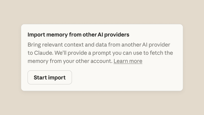 이제 무료 플랜에서도 메모리 기능을 사용할 수 있습니다. 또한 저장된 메모리를 Claude로 가져오는 과정이 더욱 간편해졌습니다. 원할 때 언제든지 메모리를 내보낼 수 있습니다.