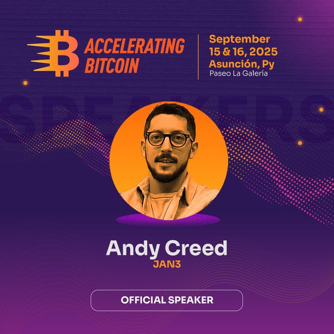 🚨 새로운 연사 발표 @JAN3com의 소프트웨어 개발자 @andycreed0x가 Accelerating Bitcoin에서 연사로 나섭니다! 🇵🇾 📍9월 15-16일 | 아순시온 🎟 지금 티켓을 예매하세요: http:/acelerandobitcoin.com