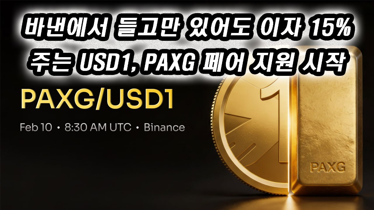 📌 바낸에서 들고만 있어도 ~15% 주는 USD1, PAXG 페어도 나옴