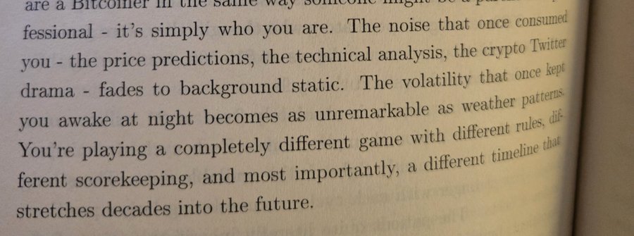 @dotkrueger와 @bensig가 인사드립니다. 이 책은 #비트코인 홀더 라면 누구나 읽어볼 만한 매력적인 책입니다. 확신을 확인하는 용도로든, 오렌지필링 도구로든 말이죠. 훌륭한 연말 선물이 될 것입니다. 나는 17장: 홀딩의 심리학을 읽기 위해 앞으로 넘어갔습니다.