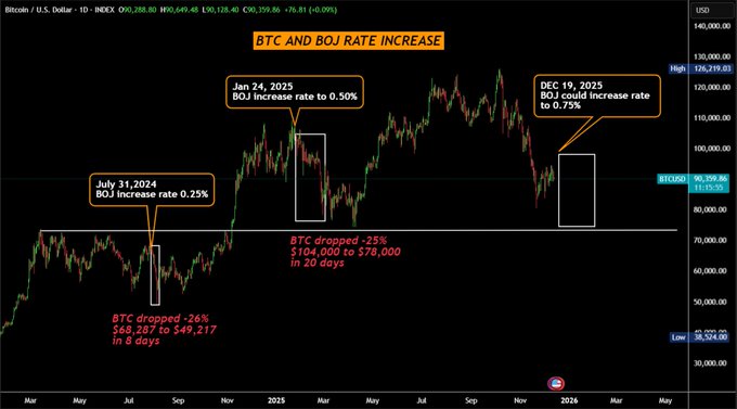 2025년 1월 일본은행이 다시 금리를 인상하자 비트코인은 이후 몇 주 동안 약 25% 하락했습니다.