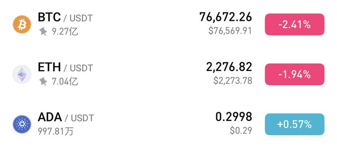 BTC跌到75000附近 ETH跌到2200附近 到了关键支撑位附近,短期受到黄金影响,再加上对于降息的悲观预期,和连环清算踩踏,短期已经严重超跌了! 这里多空博弈严重,同时也受到币安承诺10亿美金抄底的兑现,多空会反复拉扯。 此时,不要过于恐慌但是也不用乐观,我始终相信跌的有多猛,涨的就有多凶!