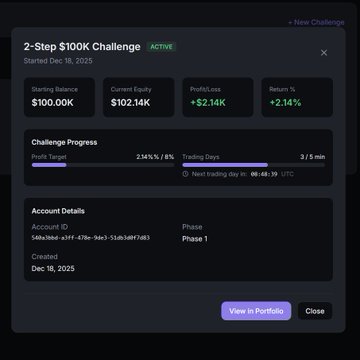@atsfunded의 10만 달러 2단계 계좌에서 첫 거래를 하고 2,100달러 수익을 냈습니다! 이 계좌는 단 500달러밖에 안 들었어요. 약 30분 동안 단 두 번의 거래로 챌린지의 25%를 달성했습니다. 이제 남은 돈은 전부 제 거예요. 참고로 제 20% 할인 코드 사용 기한이 5일 남았습니다. twitter.com/MidCurveMortal/sta...