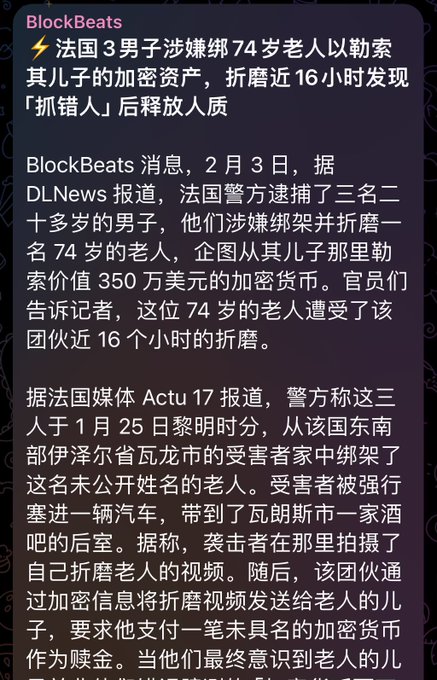 중국 거리에서 한 거물이 강도들에게 수천만 달러 상당의 암호화폐를 강탈당한 사건이 아직도 기억납니다. 저는 여전히 현실에서 암호화폐 이야기를 꺼내지 않고, 암호화폐 관련 소셜 미디어도 일절 이용하지 않습니다. 제 안전을 위해 최선을 다하고 있습니다. 암호화폐는 가장 쉽게 이체할 수 있는 자산이지만, 동시에 가장 쉽게 표적이 되기도 합니다. Z세대 남성들이 돈을 벌고 나면 현실에서 부를 과시하고 싶어하는 마음은 이해하지만, 개인 안전에는 각별히 주의해야 합니다. 사람들의 마음은 예측할 수 없으니까요. 아프리카에서 란잔페이가 강도를 당한 사건도 불과 몇 달 전 일입니다. 더 거슬러 올라가면 발리에서 코인업계 재벌이 지갑이 텅 빈 채 살해당한 사건도 있었죠. 현재 중국의 사회 분위기와 인간관계를 고려할 때, 갑자기 큰돈을 벌었다고 해서 과시하는 것은 자멸적인 행위이며 악의적인 사람들의 표적이 되기 쉽습니다. 우리 모두 온라인에서 이야기 나누고, 미국 달러를 벌고, 가끔씩 돈을 인출하며 만족스러운 삶을 사는 것이 좋겠습니다. 왜 꼭 직접 만나야 하죠? 우리 모두 돈을 벌고 있는데, 굳이 그럴 필요가 있을까요?