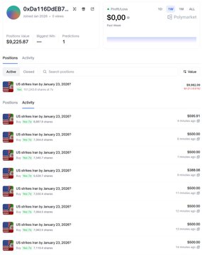 트럼프: "정보 유출자가 잡혀 지금 감옥에 있습니다. 바로 베네수엘라 관련 정보 유출자입니다." 이는 이달 초 마두로 체포 작전으로 40만 달러를 챙긴 내부자에 대한 이야기일 수 있습니다. 그의 계좌 내역은 다음과 같습니다. x.com/PredictFolio/status/2007...…