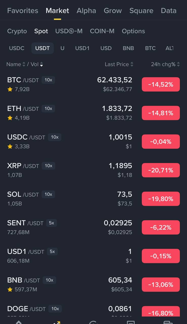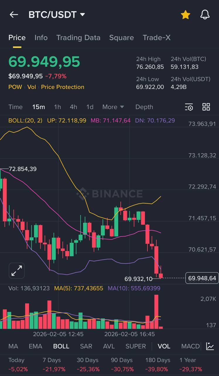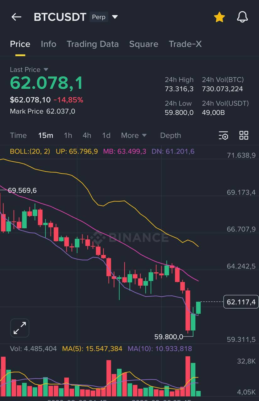 비트코인 가격이 공식적으로 60달러대로 떨어졌습니다 🙏 @margintradingTCVN