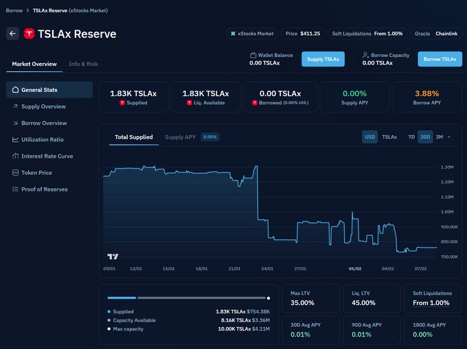 기억하시겠지만, 이전에 고정 금리 대출을 제공하는 DeFi 플랫폼인 Termmax에 대해 논의한 적이 있습니다. 현재 TSLA의 이자율은 6.8%이며, 만기까지 이자율을 고정할 수 있습니다.