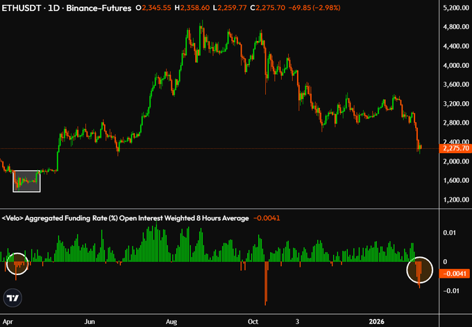젠장... 이더리움(ETH) 펀딩 비율이 5일 연속 마이너스를 기록했습니다. 이런 일이 마지막으로 일어난 건 4월이었는데, 그 후 이더리움(ETH) 가격이 250% 급등했습니다.