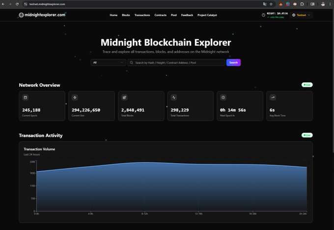http:/midnightexplorer.com 통계에 따르면, 미드나잇 네트워크(@MidnightNtwrk)는 총 3,003,588개의 블록을 생성하여 테스트 네트워크에서 공식적으로 300만 블록 돌파했습니다!🔥