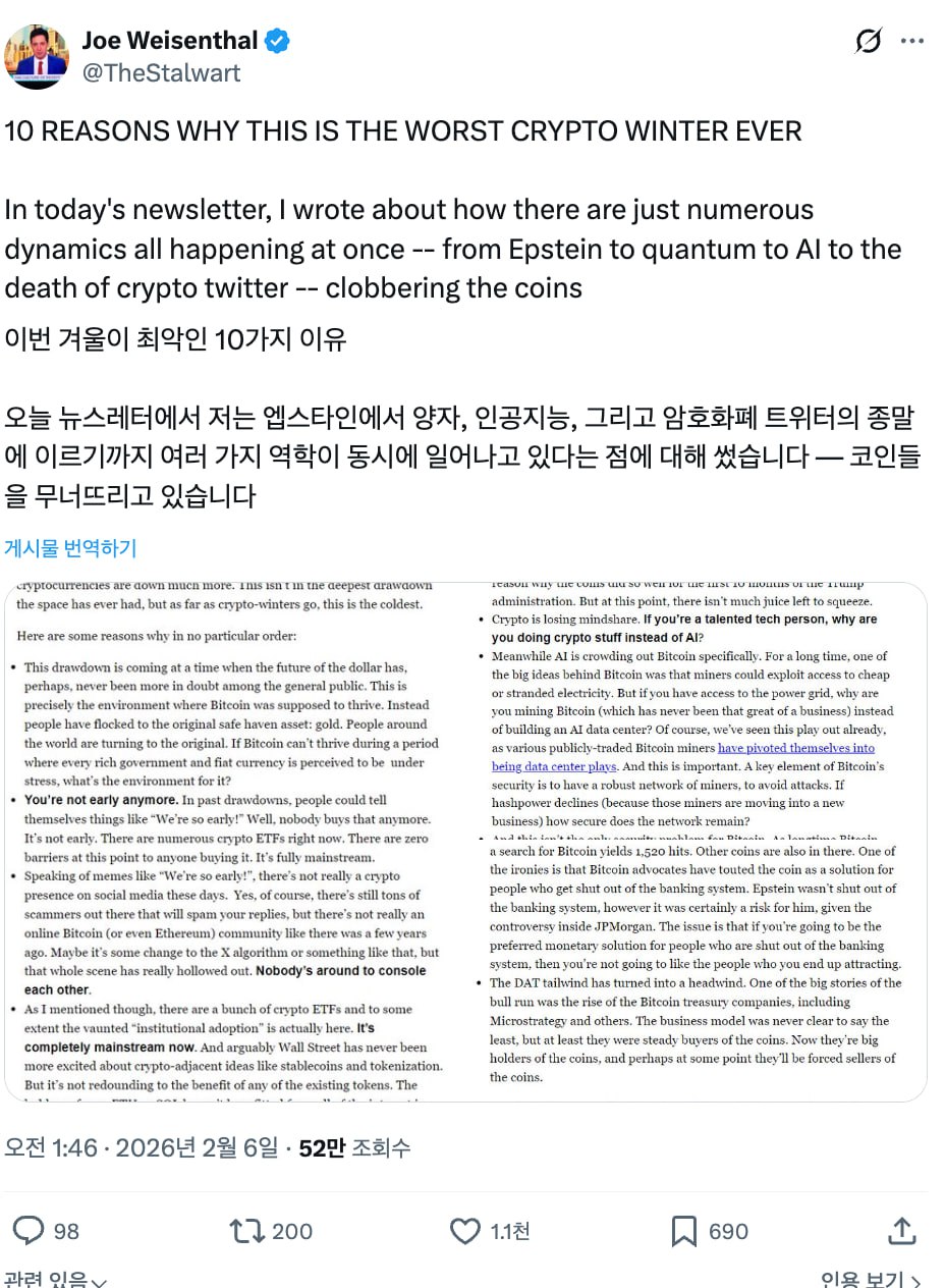 이제 크립토는 완전히 메인스트림이라 “초기 투자”라는 자기최면이 불가능해졌다.