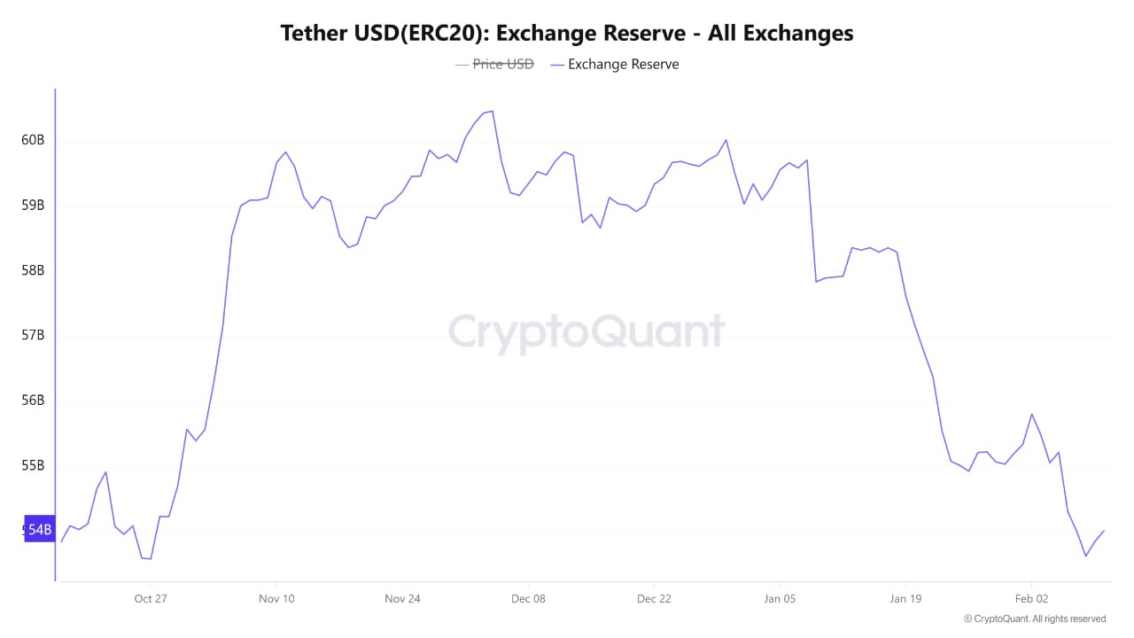 USDT 거래소 준비금이 12월 대비 크게 감소하며 #BTC 매수 여력이 약화됐고, 지속적인 반등을 위해서는 스테이블코인 유입 회복이 필요합니다.
