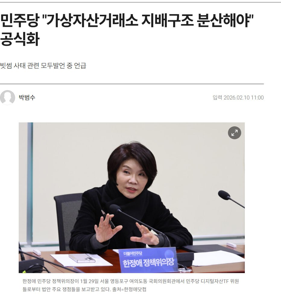 민주당 "가상자산거래소 지배구조 분산해야" 공식화