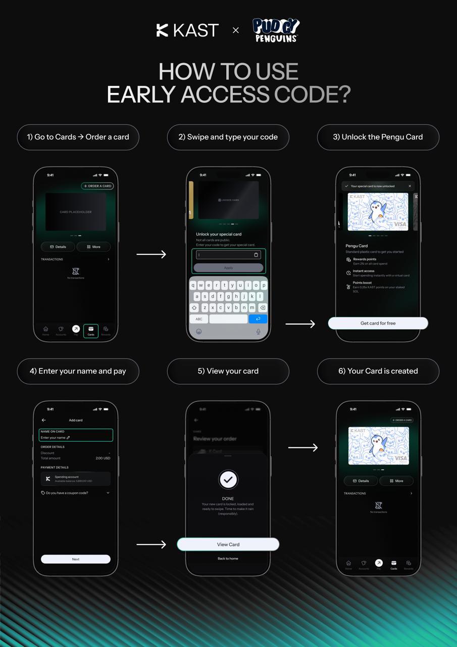 KAST 앱 설치 후, 코드 등록하면 Pengu 카드 발급 가능.