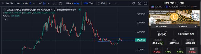 밈코인에 유동성이 다시 유입되고 있으며, 이를 믿는 사람들은 다시 보상을 받고 있습니다. 그래서 저는 $useless을 다시 구매했습니다. 2025년 4분기 전체 시장 폭락으로 신고가 대비 80% 하락했습니다. 2026년에 시장이 어느 정도 강세를 보이기 시작하자마자 $useless는 100% 반등하여 현재 재시험 중입니다. 2026년 1분기에 비트코인(BTC) 과 알트코인에 대해 낙관적이라면, $useless에도 낙관적이어야 합니다.