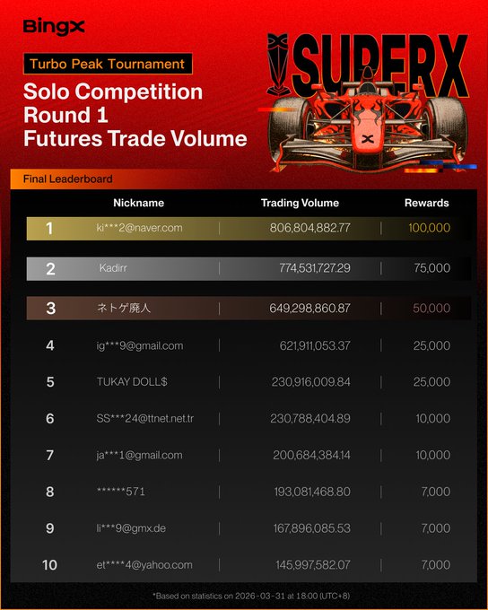 🏎️ 1라운드 TURBO PEAK 대회는 어떻게 진행되고 있나요? 📊 최고의 실력을 보여주고 최고의 플레이어들과 #거래하여 푸짐한 상품을 나눠 가지세요. #BingX #CryptoAlpha #CryptoVIP twitter.com/Titritimundi/statu...