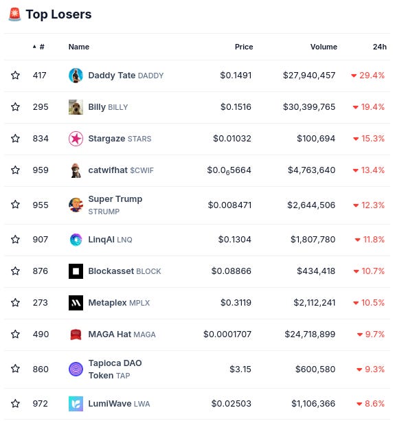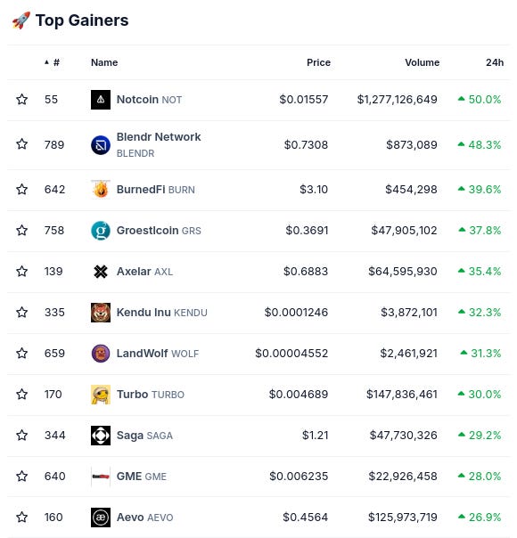 (Từ @coingecko top 1000, thay đổi sau 24 giờ)