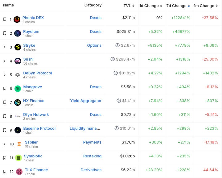 Công cụ chuyển động Tổng giá trị khóa (TVL) lớn nhất + Khác