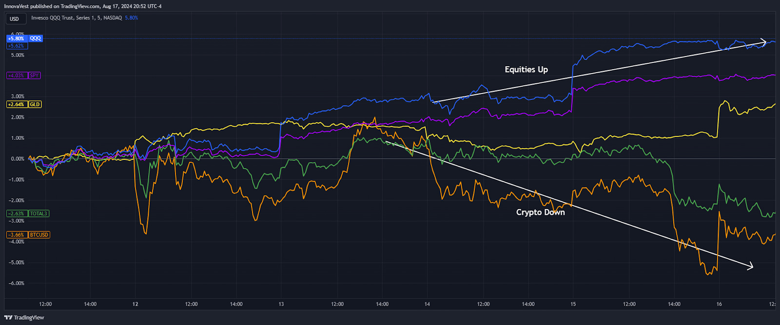 Có một số lý do dẫn đến sự chênh lệch hiệu suất giữa thị trường tiền điện tử và thị trường cổ phiếu.
