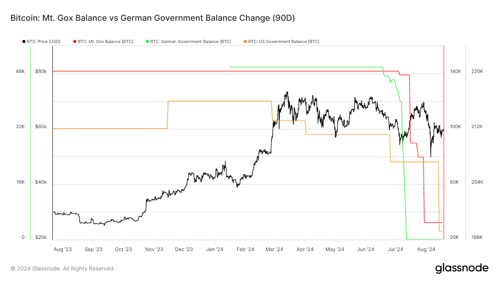 Thanh khoản toàn cầu đóng vai trò quan trọng trong các chu kỳ 2015-2017 và 2019-2021, với tiền điện tử vượt trội hơn hẳn cổ phiếu trong các giai đoạn thanh khoản toàn cầu mở rộng. Tuy nhiên, đã ba năm trôi qua kể từ khi chúng ta đạt đỉnh về thanh khoản toàn cầu, khi các ngân hàng trung ương trên toàn thế giới thắt chặt chính sách tiền tệ để chống lại lạm phát sau đại dịch. Các dấu hiệu cải thiện thanh khoản chỉ xuất hiện kể từ tháng 7. Dữ liệu thị trường lao động tốt hơn dự kiến đã làm giảm kỳ vọng của thị trường về việc cắt giảm lãi suất 50 điểm cơ bản (bps) vào tháng 9 xuống còn 25%, giảm từ mức 85% chỉ một tuần trước đó, góp phần vào đợt bán tháo tiền điện tử trong tuần này. Mặc dù vậy, thị trường vẫn đang định giá 77% khả năng cắt giảm lãi suất 75bps vào cuối năm.