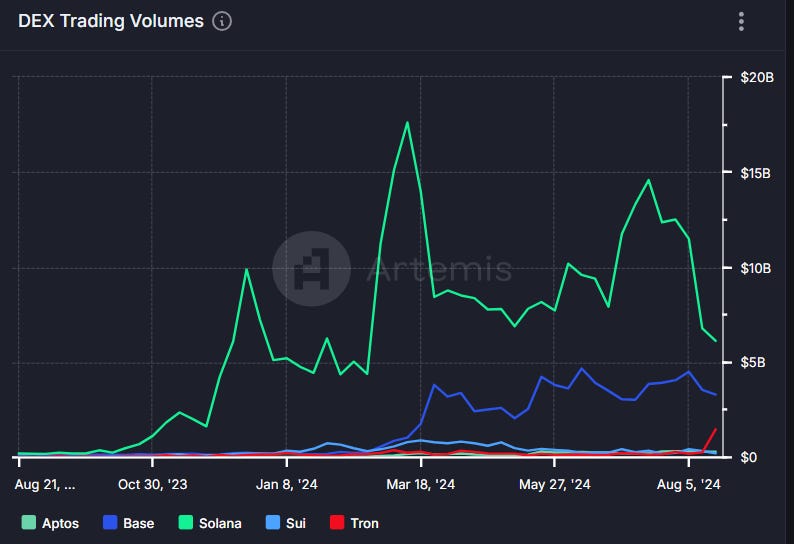Trong khi TRON đã thành công khẳng định mình là chuỗi được ưa chuộng để thanh toán bằng tiền mã hóa cho các quốc gia thị trường mới nổi, tự hào có nguồn cung USDT lớn nhất, thì nó vẫn chưa thiết lập được một hệ sinh thái DeFi phát triển mạnh mẽ. Ngay cả sau đợt tăng giá meme , tổng khối lượng giao dịch Sàn phi tập trung (DEX) của Tron vẫn chỉ bằng ¼ của Solana. Liệu meme có thể thúc đẩy hệ sinh thái DeFi của TRON lên một tầm cao mới không? Có lẽ vậy, nhưng chúng tôi không tin rằng một hệ sinh thái DeFi lành mạnh lại được xây dựng dựa trên thành công của meme. Trên thực tế, những lo ngại tương tự về meme đã được nêu ra liên quan đến Solana. Meme có thể thu hút người dùng đến với hệ sinh thái, nhưng sự tăng trưởng bền vững đến từ hệ sinh thái Các ứng dụng phi tập trung (DAPPS) đa dạng, nơi người dùng không chỉ có thể đầu cơ mà còn tham gia vào các tiện ích thực và tận hưởng trải nghiệm. Solana đã cho thấy tiềm năng để thực hiện tất cả những điều đó, với các dự án DePin, DeFi, trò chơi và xã hội đáng chú ý được xây dựng trên nền tảng này. Hơn nữa, Solana tiếp tục đầu tư mạnh vào đổi mới, với các sáng kiến như Firedancer, Token Extension và Blinks nhằm mục đích nâng cao cơ sở hạ tầng và trải nghiệm người dùng.