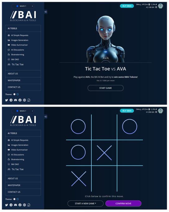 🚀 Tin tức hấp dẫn! Chúng tôi đang ra mắt khái niệm trò chơi Blockchain AI đầu tiên độc quyền trên Waves Testnet! 🕹 🎮 Trải nghiệm trò chơi Cờ caro sáng tạo của chúng tôi và xem cách BlockAI kết nối các ứng dụng phi tập trung (DAPPS) của Blockchain với AI bằng cách sử dụng ứng dụng BAI và hệ thống Callback. Hãy tưởng tượng những khả năng vô tận