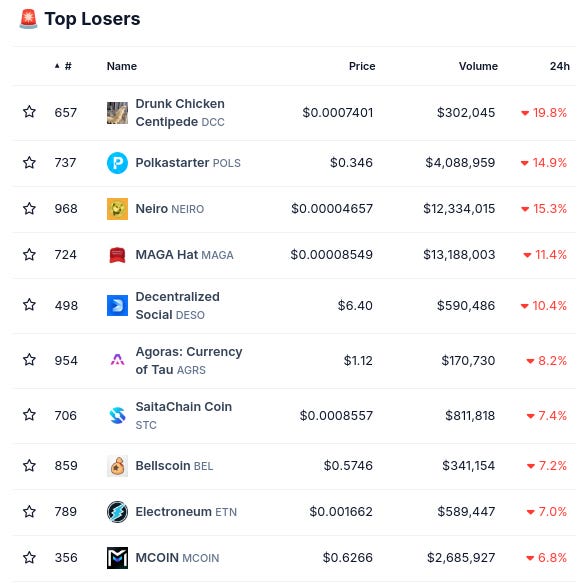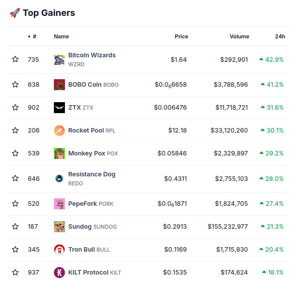 (Từ @coingecko top 1000, thay đổi theo 24 giờ)