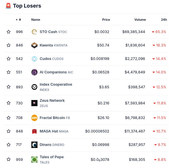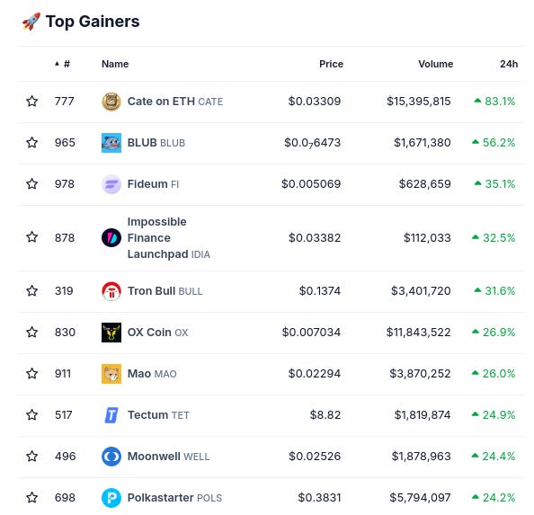 (Từ @coingecko top 1000, thay đổi theo 24 giờ)