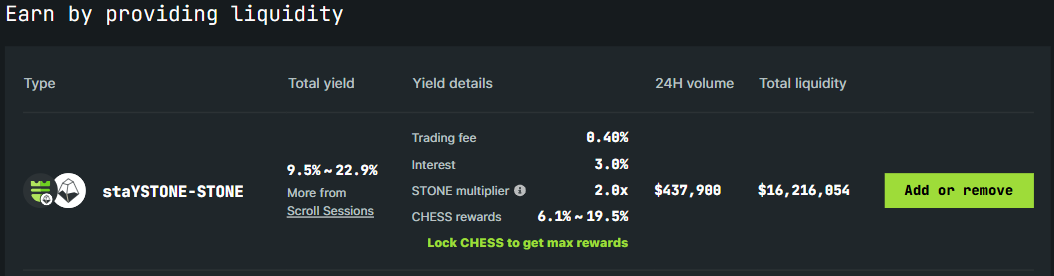Tranchess cũng giới thiệu token NHÀ CUNG CẤP THANH KHOẢN staYSTONE-STONE để mang lại cơ hội lợi nhuận bổ sung cho người dùng sinh thái.