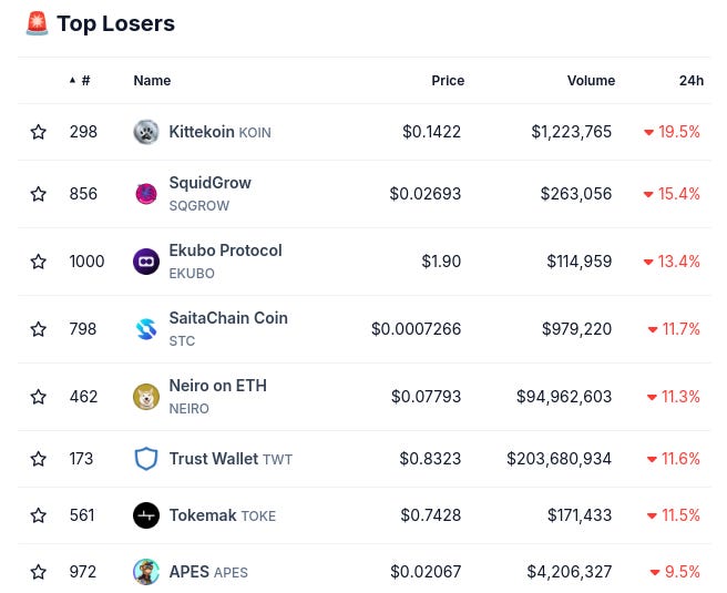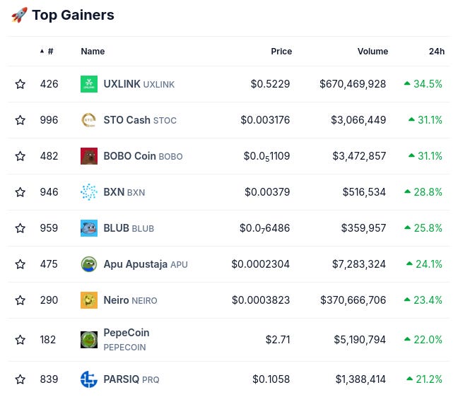 (Từ @coingecko top 1000, thay đổi theo 24 giờ)