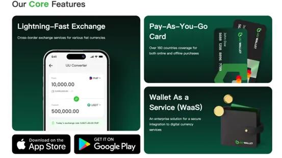 - Thứ ba, Ví như một Dịch vụ (Wallet-as-a-Service, WaaS): Giải pháp WaaS của UU Wallet được thiết kế để trao quyền cho doanh nghiệp, cung cấp chức năng quản lý an toàn tiền điện tử, cho phép họ tích hợp thanh toán kỹ thuật số một cách hiệu quả và an toàn trong các tình huống thu tiền. Thông qua dịch vụ WaaS, doanh nghiệp không cần phát triển thêm, có thể cho phép khách hàng thanh toán trực tiếp bằng tiền điện tử, thu hút thêm nhiều người dùng quốc tế. Ví dụ, nhiều doanh nghiệp xuất khẩu tại thị trường Philippines hiện đang sử dụng hệ thống WaaS của UU Wallet để thu tiền, thanh toán và chuyển đổi tiền điện tử một cách liền mạch, nâng cao tính tiện lợi và khả năng mở rộng kinh doanh toàn cầu.