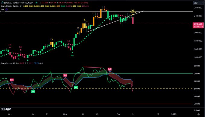 $SOL đã dẫn đầu về sự phân kỳ và là tín hiệu bán chờ xử lý đầu tiên trên biểu đồ hàng ngày.