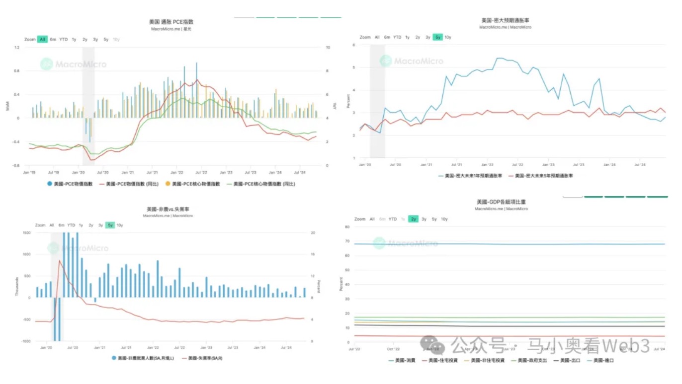 Tiếp theo, chúng ta hãy xem xét một số bộ dữ liệu vĩ mô, bao gồm chỉ số PCE, tỷ lệ thất nghiệp và phi nông nghiệp cũng như chi tiết tăng trưởng GDP. Có thể thấy rằng chỉ số PCE của Hoa Kỳ đã không tăng đáng kể ít nhất trong giai đoạn vừa qua. dù tính theo PCE hàng năm hay so với cùng kỳ năm trước, tốc độ tăng trưởng PCE cốt lõi hàng năm vẫn ở mức dưới 2,5. Đồng thời, tỷ lệ lạm phát dự kiến của Đại học Michigan cũng duy trì ổn định. và tỷ lệ thất nghiệp không tăng đáng kể. Bảng lương phi nông nghiệp hàng tháng cũng tăng trưởng so với trước, điều này cũng cho thấy thị trường việc làm cũng cho thấy mặt mạnh mẽ khi tính đến việc cắt giảm thuế của Trump và các đợt cắt giảm thuế tiếp theo, tăng trưởng GDP cuối cùng cũng có xu hướng ổn định và vẫn chưa ổn định. đã thay đổi ở một chi tiết nhất định. Đã có sự sụt giảm rõ rệt về số lượng mặt hàng. Do đó, nhìn từ góc độ dữ liệu vĩ mô, không có dữ liệu hỗ trợ cho việc nhận định lạm phát tái xuất hiện hay suy thoái kinh tế trong năm tới. Điều này cũng cho thấy mối lo ngại của Powell vẫn đến từ những tác động chính sách không chắc chắn của Trump.