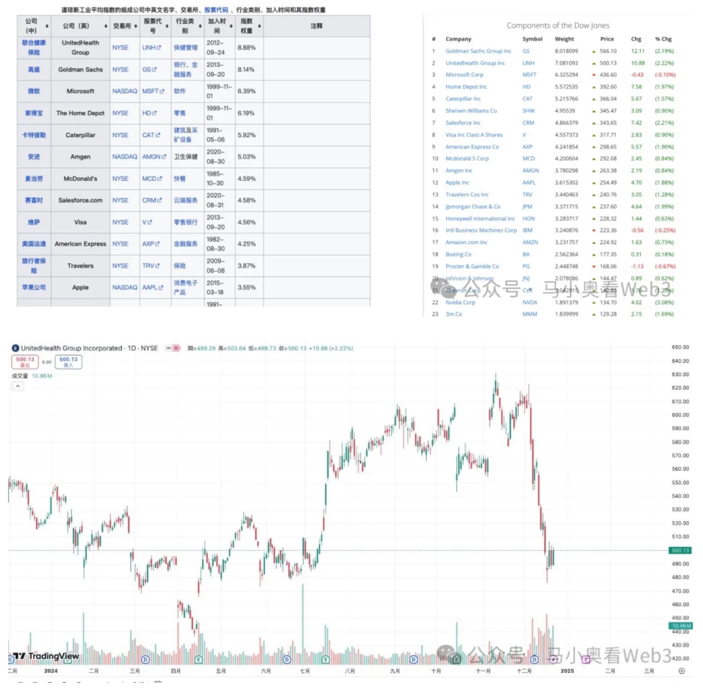 Hãy để tôi giải thích thêm một điểm ở đây. Chỉ số Dow Jones đã lập kỷ lục về mức giảm liên tiếp. Một số bạn bè cho rằng rằng điều này phản ánh sự bi quan của thị trường về triển vọng phát triển trong tương lai của ngành công nghiệp Mỹ. Lý do cho tác động này không phải là rủi ro tình dục mang tính hệ thống, phần lớn là do sự điều chỉnh giảm mạnh của UnitedHealth Insurance. Trước hết, Chỉ số Trung bình Công nghiệp Dow Jones (DJIA) là một chỉ số tính theo giá, có nghĩa là tác động của giá của từng cổ phiếu thành phần lên chỉ số phụ thuộc vào giá trị tuyệt đối của giá cổ phiếu chứ không phải giá trị vốn hóa thị trường. Điều này có nghĩa là các mục tiêu giá cao sẽ có tỷ trọng cao hơn trong chỉ số Dow. Tính đến ngày 2 tháng 11 năm 2024, UnitedHealth Insurance chiếm tỷ lệ tỷ trọng cao nhất trong chỉ số Dow, chiếm 8,88% và gần đây nhất Trong tỷ trọng, cổ phiếu riêng lẻ. tỷ trọng UNH đã giảm xuống còn 7,08% và giá cổ phiếu đã giảm từ mức 613 vào ngày 4 tháng 12. Giảm mức 500 hiện tại, giảm tới 18%, trong khi tỷ trọng có tỷ trọng cao khác chưa thấy mức giảm như vậy. Do đó, nguyên nhân chính dẫn đến sự sụt giảm của chỉ số Dow đến từ điểm đơn lẻ. rủi ro từ tỷ trọng hạng nặng UNH, thay vì rủi ro hệ thống, sau đó là UNH Chính xác thì chuyện gì đã xảy ra? Nguyên nhân chính là việc Giám đốc điều hành UNH Brian Thompson đã bị một tay súng bắn nhiều phát bên ngoài khách sạn Hilton ở Manhattan, New York, vào tháng 12. 5. Anh ấy chết sau khi được đưa đến bệnh viện. Tay súng tên là Luigi Mangione, người có bối cảnh xã hội tốt. Quá trình thẩm vấn cho thấy hành vi của anh ta xuất phát nhiều hơn từ việc UNH bóc lột người dân Mỹ về mặt bảo hiểm y tế, điều này đã khơi dậy thiện cảm rộng rãi của xã hội đối với anh ta, gây ra sự đồng tình từ lâu. mâu thuẫn về chi phí y tế đắt đỏ ở Hoa Kỳ, cũng phù hợp với định hướng chính sách cải cách bảo hiểm y tế của Trump, nên sự cộng hưởng của cả hai đã khiến giá cổ phiếu giảm mạnh, điều này sẽ không được đưa ra ở đây.