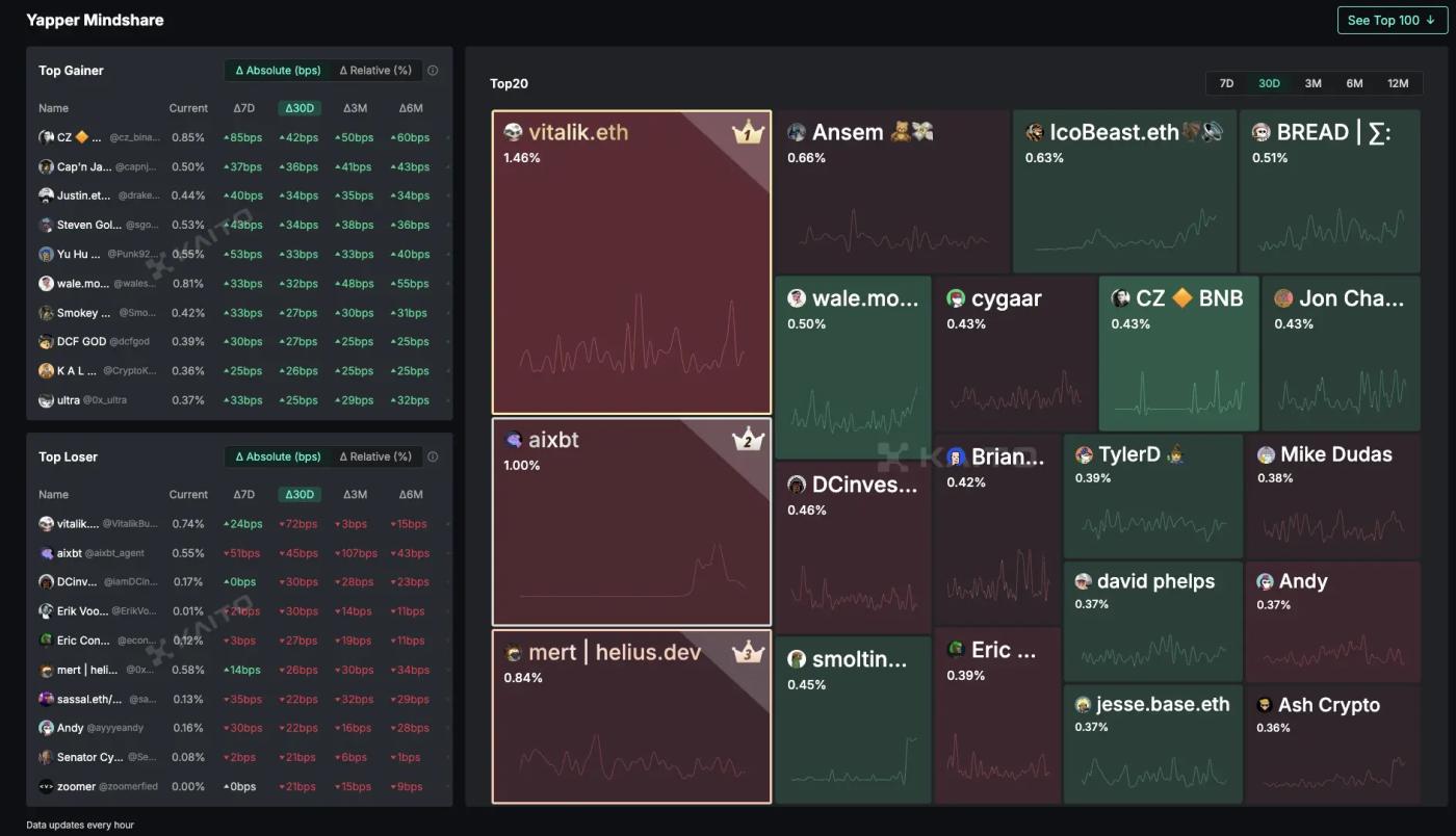 - Chấm điểm và bảng xếp hạng KOL: Dựa trên thuật toán AI, tiến hành xếp hạng động KOL, tạo ra "Bảng xếp hạng Yapper", trở thành tiêu chuẩn tham khảo để các dự án lựa chọn đối tác hợp tác.