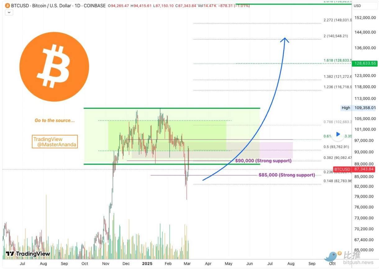 Nhà phân tích TradingView cho rằng, mức hỗ trợ then chốt ngắn hạn của BTC vẫn là 85.000 USD, mức này đã đóng vai trò rất quan trọng trong cuộc 'giằng co' của thị trường trong vài tuần qua.