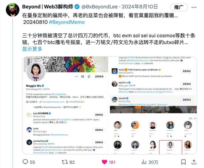 Nội dung chính: Vào cuối năm 2023, với tư cách là OG của cộng đồng Inscription, tài sản Inscription của tôi đã đạt đến 4 triệu nhân dân tệ, đây là một thành tựu vĩ đại đối với tôi lúc bấy giờ vẫn còn là một sinh viên. Tuy nhiên, do không kịp thời biến nó thành tiền mặt, cuối cùng tài sản của tôi đã về số không. Tiếp theo, vào ngày 10 tháng 8 năm 2024, tôi đã bị một cuộc tấn công kỹ thuật xã hội, khiến tất cả tài sản trên chuỗi của tôi bị xóa sạch. Trải nghiệm này đã giúp tôi nhận thức sâu sắc hơn về tầm quan trọng của việc giữ cảnh giác, xác minh chéo danh tính và bảo vệ thông tin cá nhân, an toàn tài sản không thể chủ quan.
