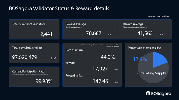 🏛️ [Báo cáo hai tuần một lần] 🌐 Kiểm tra sức khỏe Mainnet từ #Agorascan: ✅ 2.441 validator ✅ 99,98% tham gia Cùng nhau, chúng ta đang làm cho #BOSagora mạnh mẽ hơn mỗi kỷ nguyên. Cảm ơn cộng đồng validator tuyệt vời của chúng tôi! 🙌 #Block #Thực tế tăng cường (AR) #chuỗi