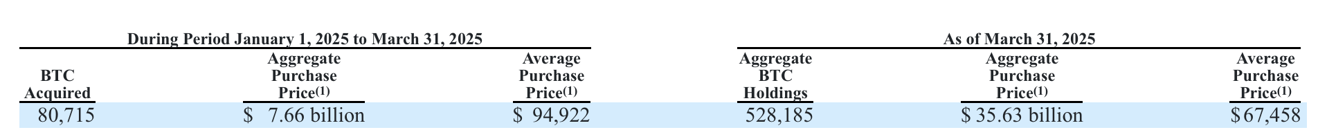 Strategy đã mua tổng cộng 80.715 đồng Bitcoin trong quý đầu tiên, chi 7,66 tỷ đô la, chi phí trung bình là 94.922 đô la.