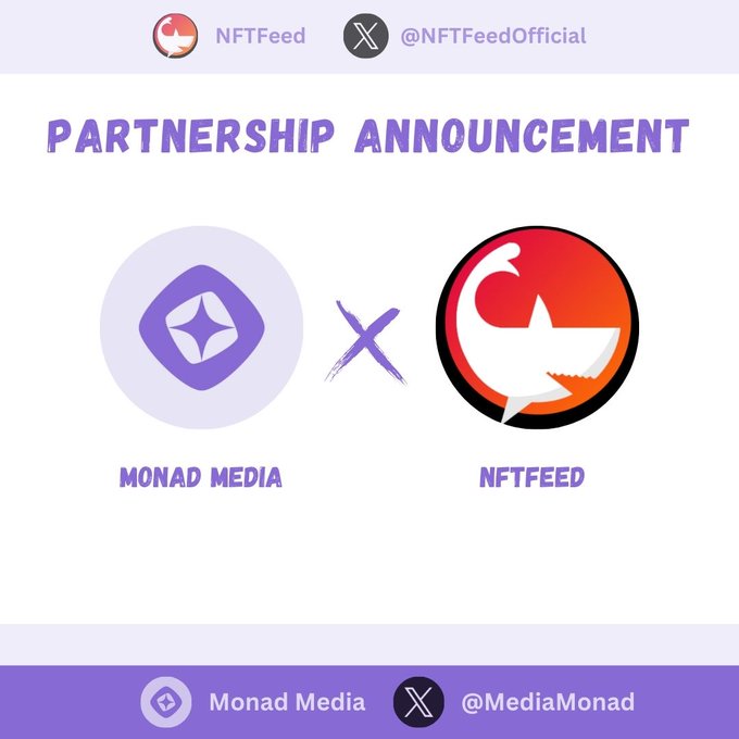 THÔNG BÁO HỢP TÁC🤝 Chúng tôi rất vui mừng thông báo sự hợp tác với @NFTFeedOfficial!💜 Cùng nhau, chúng tôi đang xây dựng một hệ sinh thái mạnh mẽ hơn và mang đến những bất ngờ thú vị cho cộng đồng. Hãy theo dõi! 🚀 #Monad #MonadTestnet #NFT