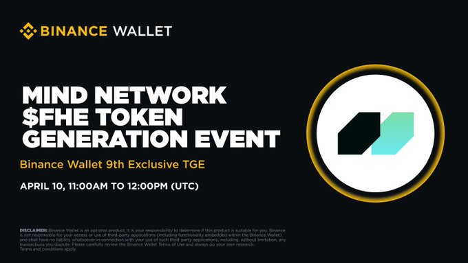 🚨Vừa mới: Ví Binance đã thông báo niêm yết <@mindnetwork_xyz> ($FHE), một dự án Sự kiện phát hành token (TGE) mới, thông qua hợp tác với PancakeSwap. Người dùng có thể tham gia với mức đóng góp tối đa là 3 $BNB. Sự kiện diễn ra từ ngày 10 tháng 4, từ 11:00 đến 12:00 UTC. 📜Mới