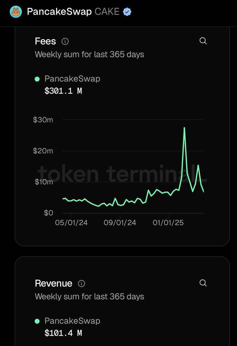 Tổng giá trị tài sản ròng hiện tại của PancakeSwap là 720 triệu, với 561 triệu giao dịch. Trong năm qua, khối lượng giao dịch đạt 250 tỷ và thu được 301 triệu phí giao dịch, trong đó 101 triệu là thu nhập giao thức của PancakeSwap . Thu nhập hàng năm hiện đã bằng 1/7 giá trị vốn hóa thị trường của toàn bộ giao thức.