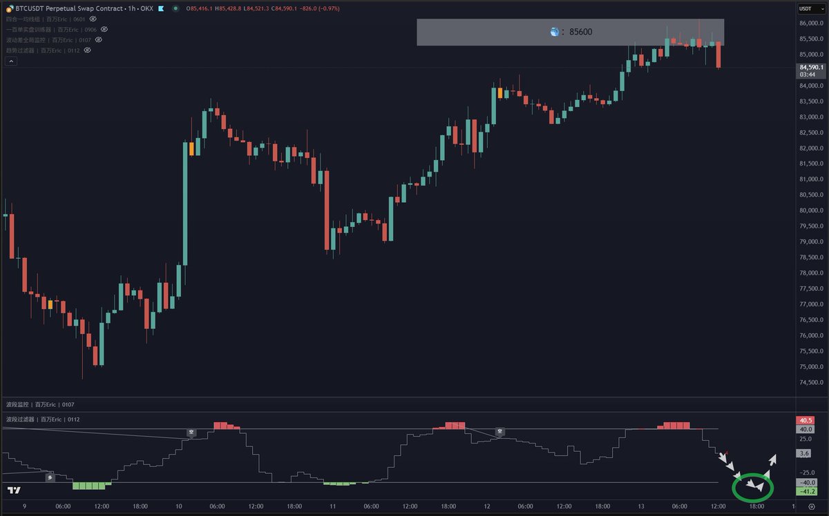 Bitcoin #BITCOIN đã đạt đến khu vực chốt lãi dự kiến đầu tiên. Vị thế long nhỏ trên OKX đã được chốt lãi hoàn toàn, vị thế lớn trên Binance đã chốt lãi 20%, đồng thời điều chỉnh đường dừng lỗ để bảo vệ lợi nhuận. Kế hoạch giao dịch tiếp theo: Quan sát cấu trúc hiện tại, xu hướng lý tưởng là điều chỉnh hồi nhẹ và kích hoạt tín hiệu quá bán trước khi tấn công lại, mục tiêu là vị trí chốt lãi dự kiến thứ hai, 87,000. Ở đây tôi muốn nhấn mạnh hai điểm: twitter.com/CycleStudies/statu...