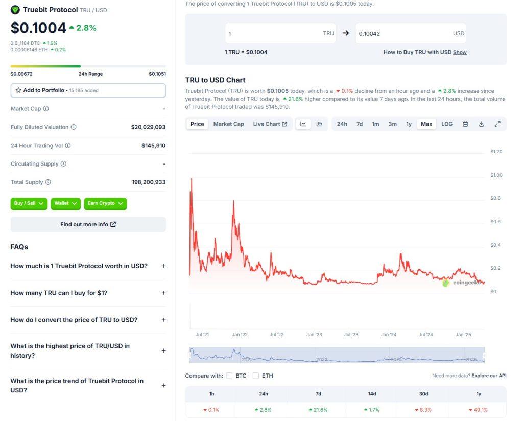 Truebit là mạng blockchain chuyên giúp người dùng thêm xác minh không cần tin cậy (trustless verification) vào nhiều ứng dụng khác nhau. Công ty đang đàm phán với các nhà cung cấp phần mềm phục vụ chính phủ Mỹ và tham gia dự án do Liên minh Châu Âu tài trợ nhằm khám phá vai trò tiềm năng của Web3 trong chuỗi cung ứng toàn cầu.