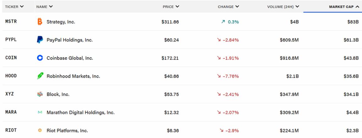 Xét về cổ phiếu crypto, một số ít cổ phiếu crypto đều đóng cửa ở mức thấp hơn, với mức giảm trung bình khoảng 2%, trong khi MSTR đi ngược xu hướng và tăng nhẹ 0,3%. Tín hiệu rõ ràng của Powell về việc "chờ xem" việc cắt giảm lãi suất và lời cảnh báo của ông về xung đột giữa lạm phát và mục tiêu kinh tế chắc chắn đã làm gia tăng sự không chắc chắn của thị trường về hướng đi của chính sách.