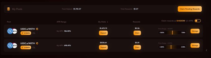 Cho dù bạn là người chơi DeFi maxxi hay người thích chơi phân khúc, chiến lược delta-trung tính-ish sẽ luôn hữu ích Tôi đã đi sâu hơn vào hệ sinh thái @SonicLabs tìm thấy một Chiến lược với ~124% APR + điểm S Sử dụng @ShadowonSonic và công cụ yêu thích của tôi — @GammaSwapLabs (công cụ bị đánh giá thấp)