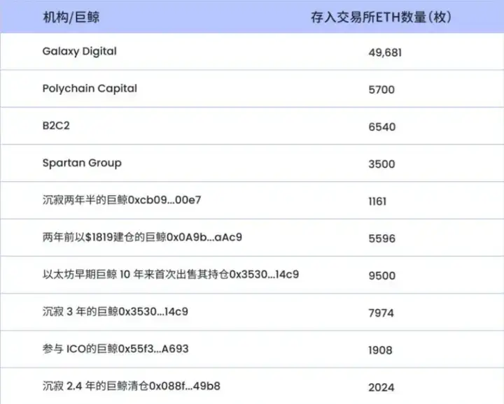 Dưới đây là một bộ dữ liệu do ChainCatcher tổng hợp, thống kê số lượng ETH mà một số tổ chức và cá voi gửi vào sàn giao dịch gần đây (chưa đầy đủ)